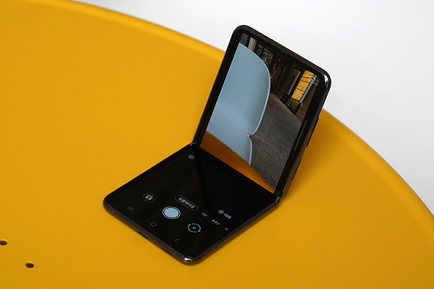 갤럭시 Z 플립 5G는 플렉스 모드를 지원합니다. 힌지를 특정 각도로 고정할 수 있는 기능인데요. 특히 커피숍 등에서 셀피를 촬영할 때 상당히 유용한 편입니다. 활용도가 높을 것 같습니다.