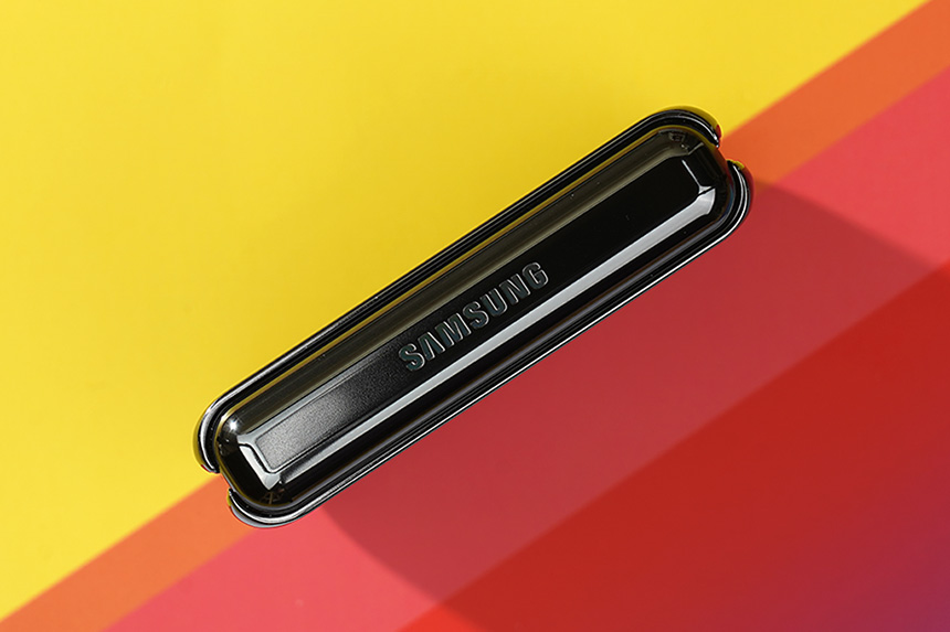 갤럭시 Z 플립 5G의 베젤은 최신 갤럭시 노트 20 시리즈와 비교하면 약간 두꺼운 편입니다. 아무래도 내구성을 위해서 두께를 조절한 것 같습니다. 그리고 모서리 부분에는 접었을 때 손상이 생기는 것을 방지해주는 고무 지지대가 배치되어 있습니다.