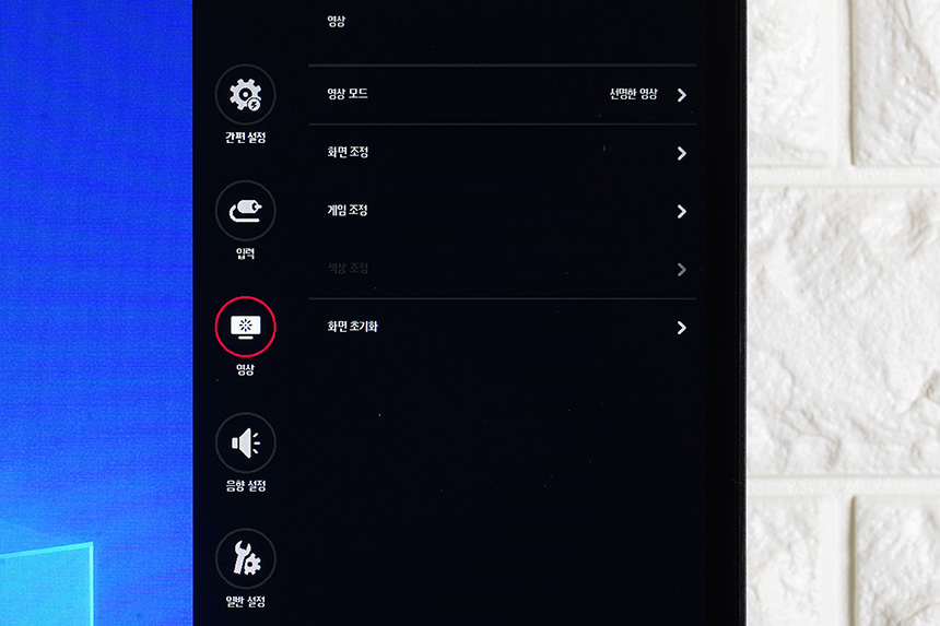 LG 울트라HD 모니터 360 27UN880의 아래쪽에 배치되어 있는 조이스틱 버튼을 누르면 OSD가 실행되는데요. 전원을 끄거나 입력이나 영상 모드를 변경하고 설정으로 진입할 수 있는 기능을 제공합니다.