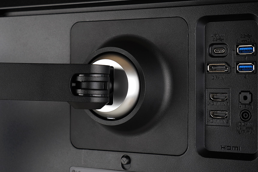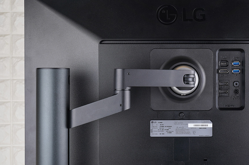 LG 울트라HD 모니터 360 27UN880의 뒷면도 일반적인 모니터와 비교할 수 없을 정도로 깔끔한 느낌을 주는 편입니다. 특히 3세대 스탠드의 공간 활용이 놀라운 편이라고 판단되었습니다.