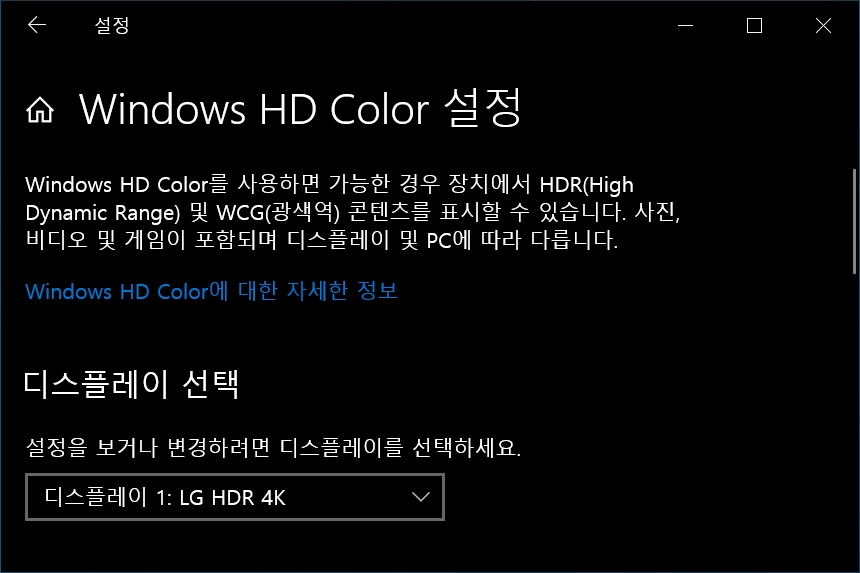 LG 울트라HD 모니터 360 27UN880의 또 다른 특징은 VESA DisplayHDR 400 인증을 받은 제품이라는 점입니다. 그래서 윈도우10 기준으로 Windows HD Color 설정을 켜면 더욱 선명한 색감으로 감상할 수 있습니다.