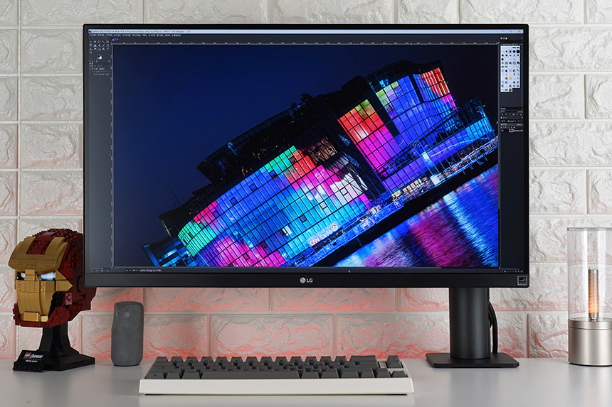 LG 울트라HD 모니터 360 27UN880의 IPS 패널은 사진 편집 작용 용도로도 부족하지 않은 색감을 제공합니다. 특히 하드웨어 캘리브레이션 기능을 지원하기 때문에 정확하게 색상을 교정할 수 있습니다.