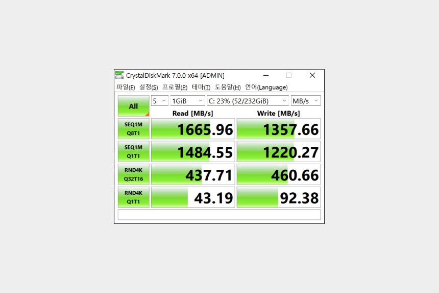 노트북의 전반적인 성능을 평가해주는 PCMARK10의 점수는 2279점이 측정되었습니다. 보급형 수준의 성능이라고 할 수 있지만, 기본적인 작업에서는 크게 불편한 부분은 없었습니다.