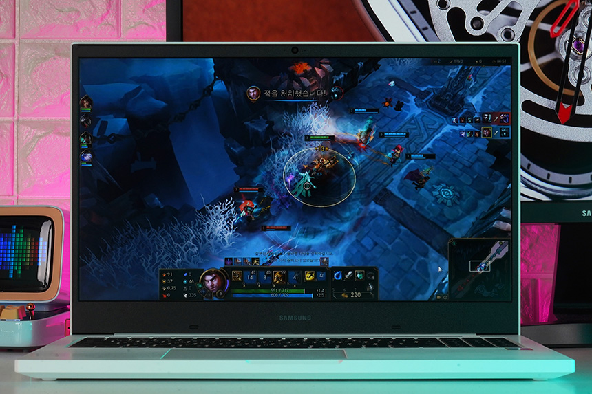 삼성전자 노트북 플러스 NT550XCR-AD2A를 이용해서 리그 오브 레전드를 플레이해 보았습니다. FULL HD 해상도와 가장 낮은 그래픽 옵션에서 평균 42프레임이 측정되었습니다. 어느 정도는 플레이할 수 있는 수준이라고 할 수 있습니다.