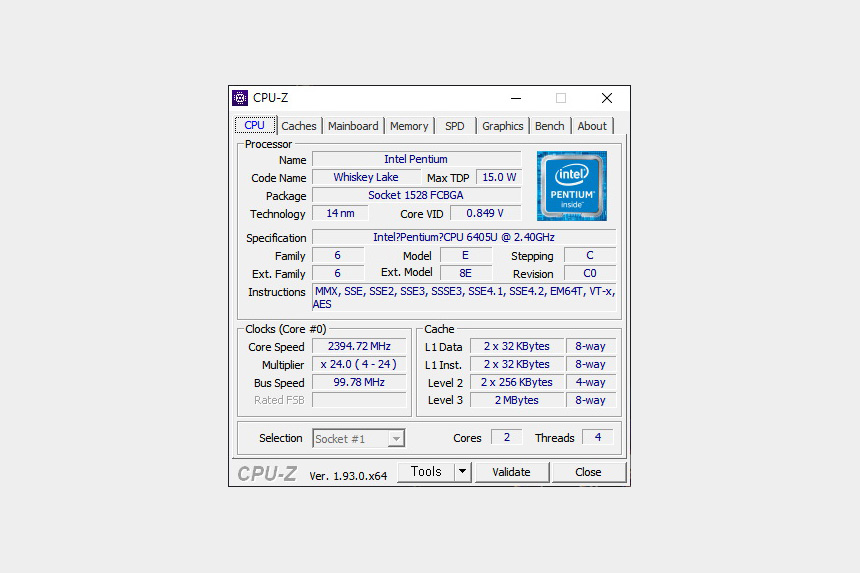 삼성전자 노트북 플러스 NT550XCR-AD2A에는 인텔 펜티엄 골드 6405U 프로세서가 탑재되었습니다. 2코어 4스레드를 지원하고 프로세서 기본 주파수는 2.4GHz입니다.