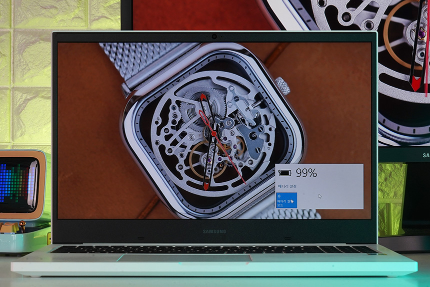 삼성전자 노트북 플러스 NT550XCR-AD2A에는 43Wh 용량의 배터리가 탑재되었고 화면 밝기 50%, 배터리 절약 모드에서 동영상을 약 8시간 37분 정도 재생할 수 있었습니다. 준수한 사용시간이라고 할 수 있습니다.