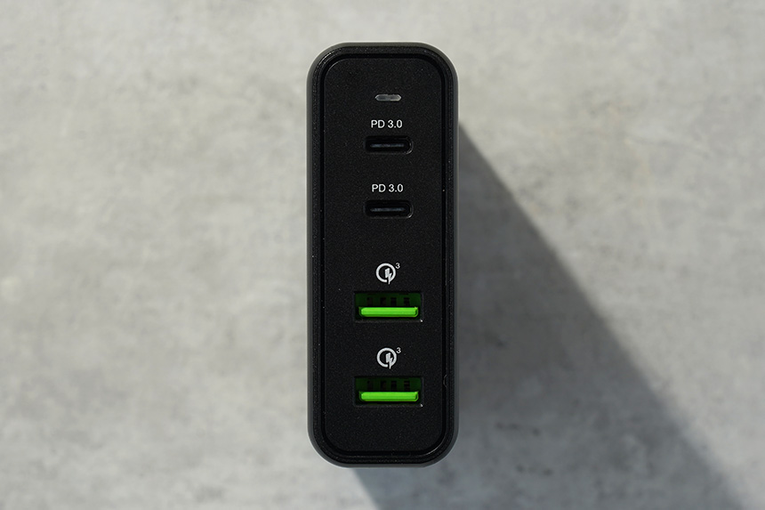 버바팀 140W 멀티 충전기에는 2개의 USB C타입 포트와 역시 2개의 USB A타입 포트가 탑재되었습니다. 각각 PD 3.0과 QC 3.0을 지원하기 때문에 상황에 맞춰서 케이블을 연결해주면 됩니다.