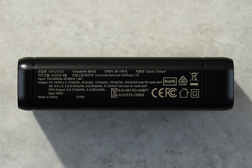 버바팀 140W 멀티 충전기는 최근에 출시되고 있는 질화갈륨(GaN) 어댑터와 비교하면 크기가 큰 편입니다. 아무래도 최고 수준의 출력을 제공하기 때문에 크기가 작은 편은 아닙니다.