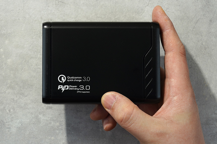 뒷면을 살펴보면 퀄컴 퀵차지 3.0과 PD 3.0 그리고 PPS를 지원한다는 문구가 표시되어 있습니다. 그리고 지원되는 대부분의 제품을 고속 충전할 수 있을 것으로 예상합니다.