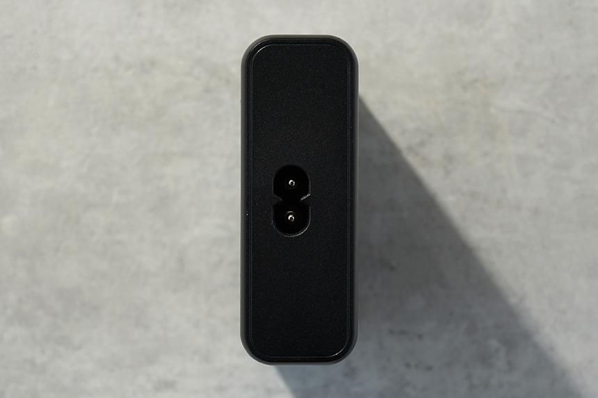 뒷면에는 케이블을 연결할 수 있는 AC 커넥터가 배치되어 있습니다. 이렇게 전원선을 이용하는 어댑터들은 커넥터 일체형 충전기와 비교해서 설치 장소의 제약이 적은 편이라는 장점이 있습니다.