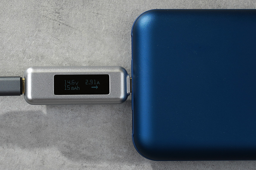 출력의 경우에는 약 50W 정도가 측정되었습니다. 최근에 인기 있는 PD 충전을 지원하는 노트북 등에서 활용하면 좋을 것 같습니다. 그리고 입력과 출력은 상황에 따라서 전압이나 전류가 달라질 수 있습니다.