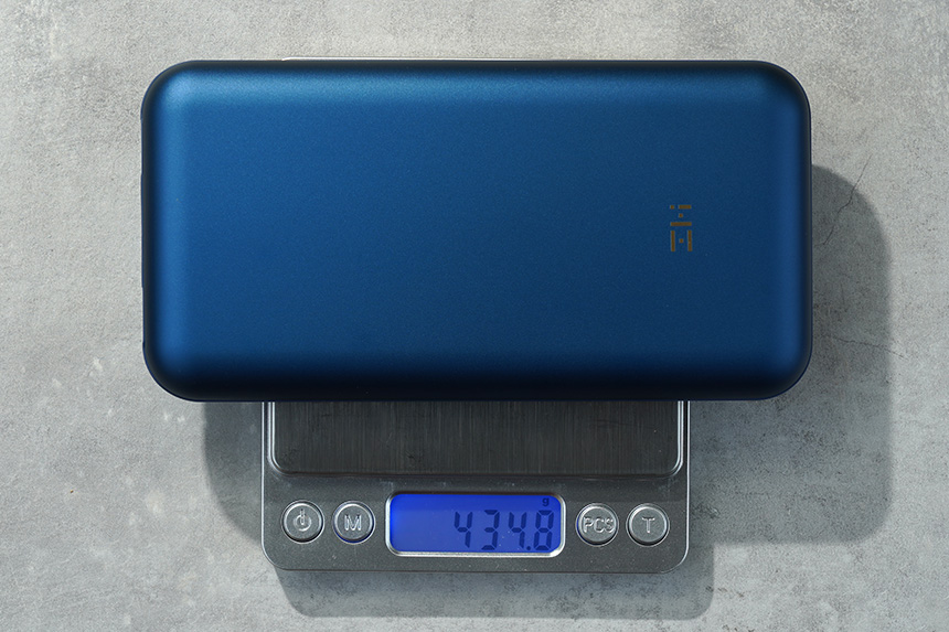 무게는 실제로 확인 결과 434g으로 측정되었습니다. 20,000mAh 용량의 배터리를 탑재하고 있어서 가볍지는 않은 편입니다. 그래서 휴대성이 좋다고 이야기하기는 어려울 것 같습니다.