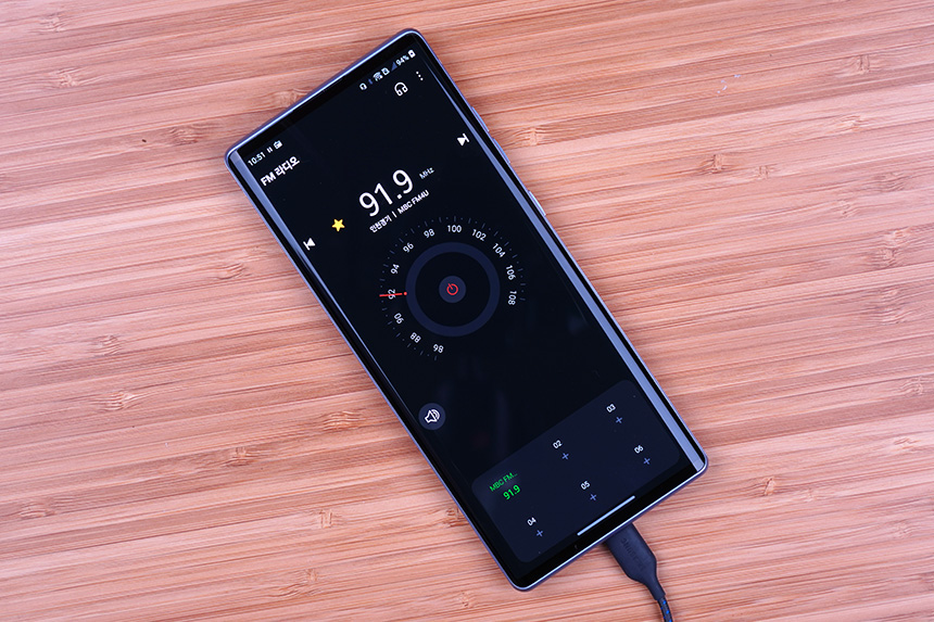 LG 윙(WING)의 편리한 기능을 확인해 보면 이어폰을 안테나로 활용하는 FM 라디오 기능이 탑재되었습니다. 데이터를 사용하지 않고 음악이나 뉴스를 들을 수 있다는 장점이 있습니다. 그리고 DMB와 같은 기능은 지원하지 않습니다. 최근에 많이 빠지는 추세인 것 같습니다.