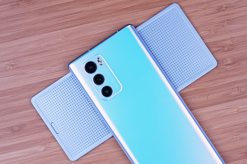 상단을 살펴보면 전면 팝업 카메라가 수납된 것을 확인할 수 있습니다. 일부 중국의 스마트폰에서 채택했던 기능인데요. 디스플레이의 상단을 깔끔하게 디자인할 수 있다는 장점이 있지만, 기계적인 부품으로 구성되어 있어서 파손의 우려가 있다는 단점도 가지고 있습니다.