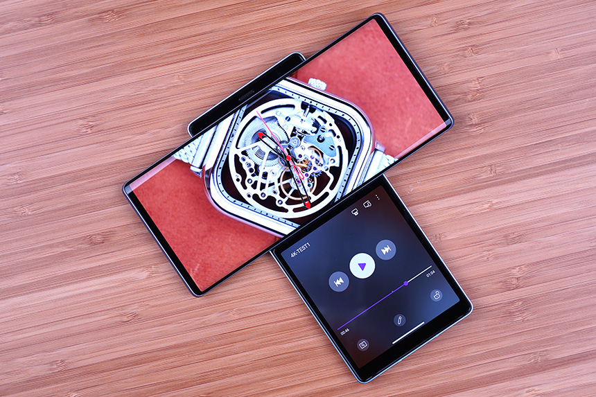LG 윙(WING)의 노치리스 메인 스크린은 동영상 감상용으로 적합한 특징을 가지고 있습니다. 특히 전면 카메라가 팝업 방식으로 설계되어서 거슬리는 부분이 없다는 장점이 있습니다.