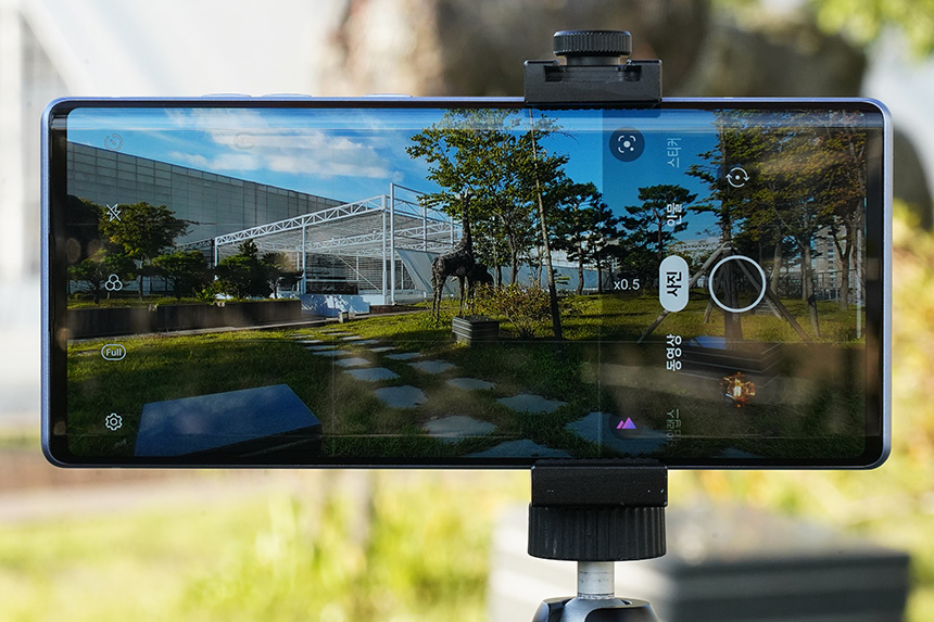 LG 윙(WING)에는 6,400만 화소의 광각과 1,300만 화소의 초광각 카메라가 탑재되었습니다. 그리고 화면의 x0.5 x1.0 x2.0 버튼을 눌러서 간단하게 화각을 변경할 수 있습니다. 2배 정도 까지는 화질이 크게 저하되지는 않았습니다.