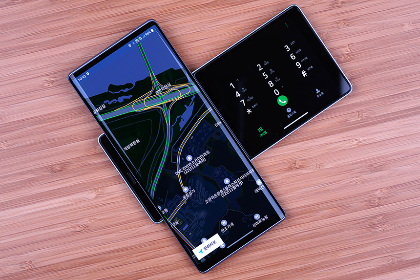 LG 윙(WING)은 다양한 방식으로 활용할 수 있도록 디자인되었습니다. 그래서 내비게이션을 실행시키면서 전화 기능들을 온전하게 실행시킬 수 있습니다. 안전 운전을 하면서 통화를 해야 하는 분들에게 유용한 부분입니다.