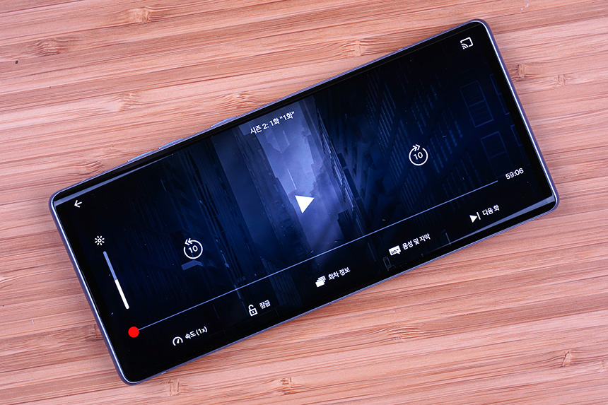 넷플릭스도 전체화면으로 깔끔하게 감상을 할 수 있었습니다. LG 윙(WING)을 사용하면서 저는 동영상 감상에 최적화되어 있는 스마트폰이라는 인상을 받았습니다.