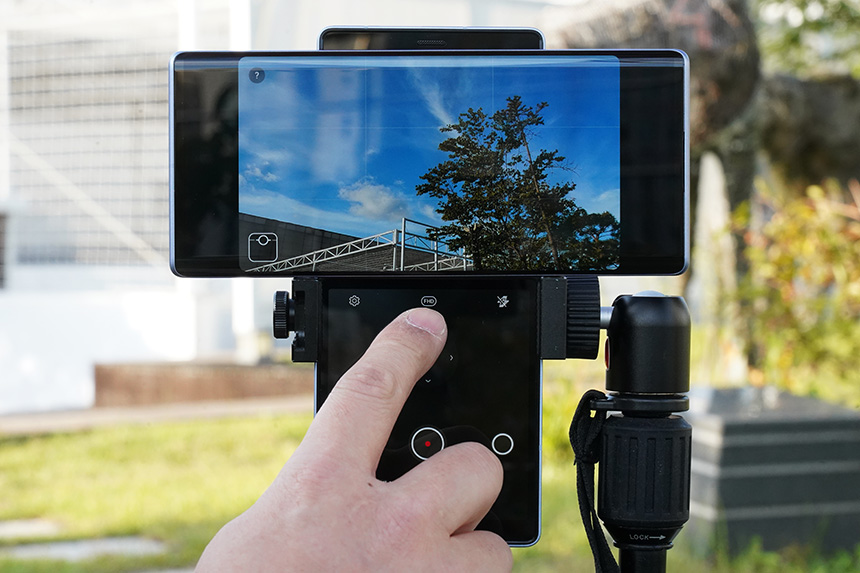스위블 모드에서 카메라 기능을 실행시키면 짐벌 모드를 사용할 수 있습니다. 1,200만 화소의 센서 중에서 중앙의 FULL HD(1920 x 1080 약 200만 화소) 부분만 사용해서 동영상을 촬영할 때 흔들림을 줄여주는 기능입니다. 소프트웨어적으로 처리하기 때문에 물리적인 짐벌과 비교하면 약간 부족할 수 있지만, 결과물은 의외로 나쁘지 않은 편이었습니다.