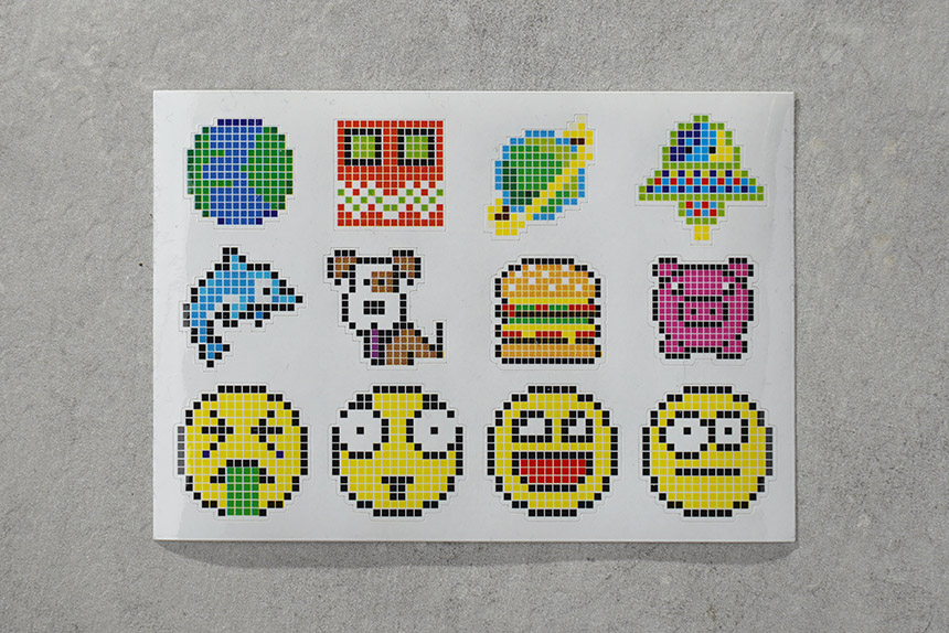 마지막으로 다양한 픽셀 아트가 포함된 스티커도 제공됩니다. 디붐 디투 픽셀아트 블루투스 스피커의 전체적인 액세서리의 종류와 품질은 무난한 편이라고 생각되었습니다.