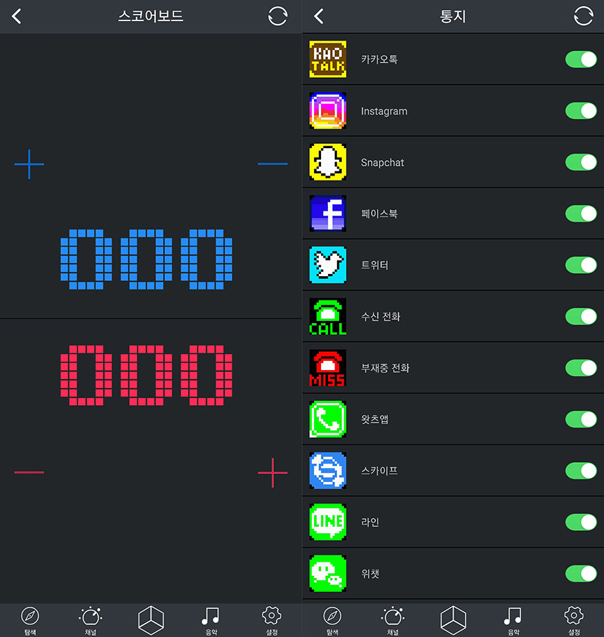 그리고 탁구와 같은 게임을 플레이할 때 스코어를 적을 수 있는 기능도 지원합니다. 그 외에도 카카오톡이나 인스타그램 그리고 페이스북과 같은 SNS 알림을 받을 수도 있습니다. 상상 이상으로 기능의 종류가 많은 편이니다.
