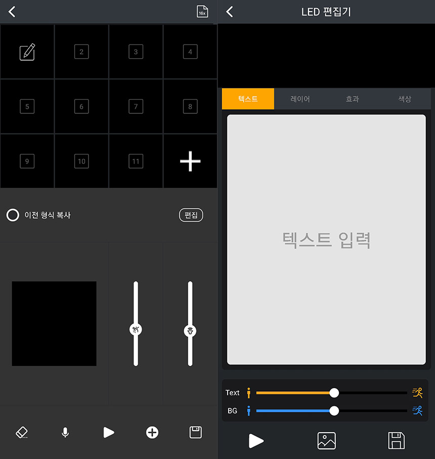 그리고 애니메이션을 만들거나 텍스트를 디붐 디투 픽셀아트 블루투스 스피커에서 출력되도록 만들 수 있습니다. 도트를 찍는 과정은 조금 번거로울 수 있어서 텍스트를 이용하는 방법을 추천합니다.
