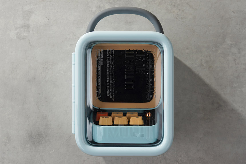디붐 디투 픽셀아트 블루투스 스피커의 박스 구성부터 범상치 않은 편입니다. 전용으로 설계된 케이스는 플라스틱으로 제작되었고 개봉하지 않고도 스피커 본체를 확인할 수 있습니다. 그리고 패키지에는 손잡이가 부착되어 있어서 다른 용도로도 활용할 수 있습니다.
