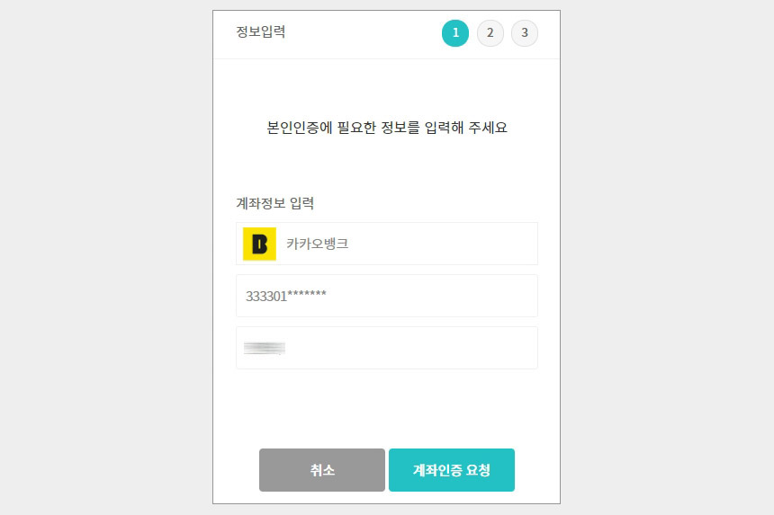 계좌인증 요청을 하면 자신의 통장에 1원이 입금됩니다. 100번 시도하면 100원이라서 여러 번 신청하지 않는 것이 좋을 것 같습니다. 그리고 이름은 부분에 6자리의 숫자가 표시됩니다.
