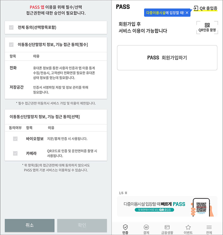 PASS 앱은 KT를 포함한 통신 3사에서 개발한 휴대전화 본인인증 서비스입니다. 신용카드나 공인인증서가 없어도 편리하게 본인인증을 할 수 있다는 장점 때문에 많이 활용되고 있고 최근에는 코로나19 시대를 맞이해서 QR코드 체크인이나 모바일 운전면허증 그리고 계좌인증을 통한 휴대폰 주문 기능까지 추가되었습니다. 그럼 이번 후기에서는 PASS 앱 의 사용 방법을 자세하게 확인해 보도록 하겠습니다.