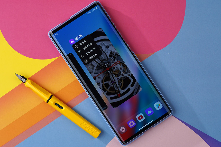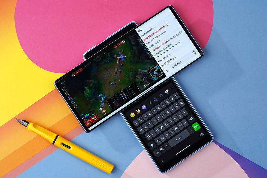 멀티 윈도우 기능을 이용하면 메인 스크린을 이용해서 두 개의 앱을 동시에 실행시킬 수 있습니다. 특히 LG WING(윙)의 노치나 펀치홀 디자인이 적용되지 않아서 눈에 거슬리는 부분이 없습니다.