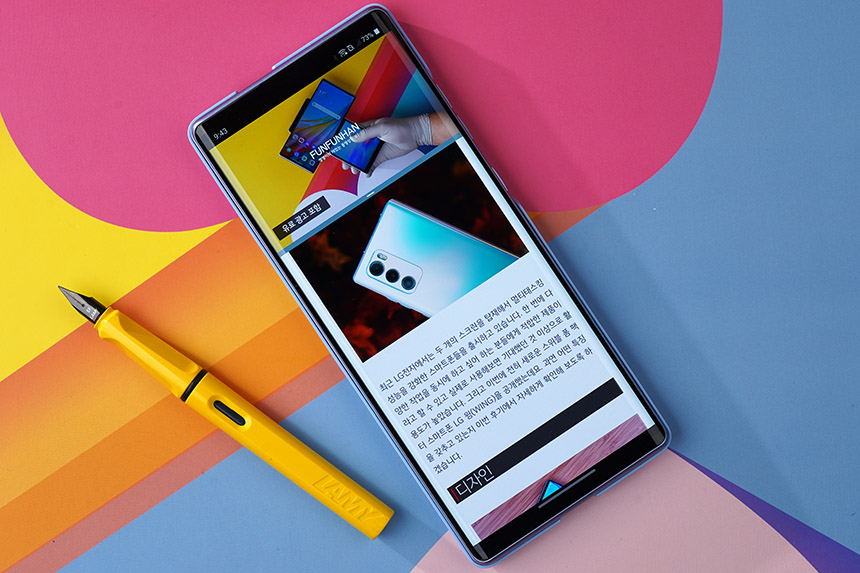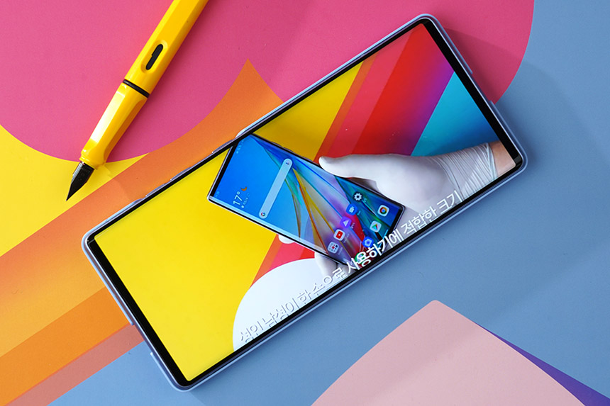 LG WING(윙)에는 노치리스 올레드 풀비전 디스플레이가 탑재되었습니다. 노치나 펀치홀이 없는 형태로 디자인되었기 때문에 유튜브나 넷플릭스 영상을 더욱 시원하는 느낌으로 감상할 수 있습니다.