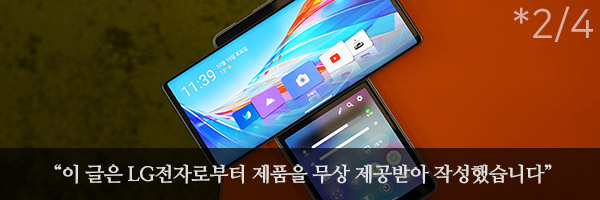 6.8인치의 메인과 3.9인치의 세컨드 스크린을 동시에 사용하는 스위블 모드는 LG WING(윙)의 핵심 기능이라고 할 수 있습니다. 특히 메인 스크린에는 전용으로 설계된 스위블 홈이 자동으로 실행됩니다.