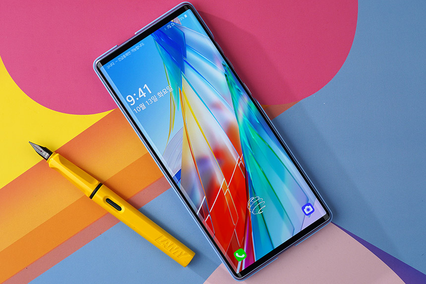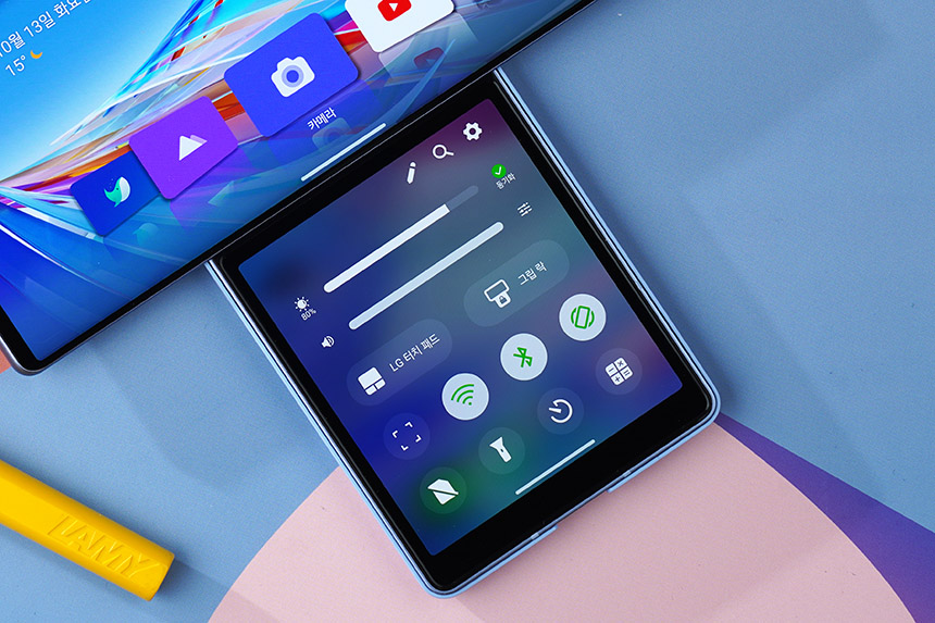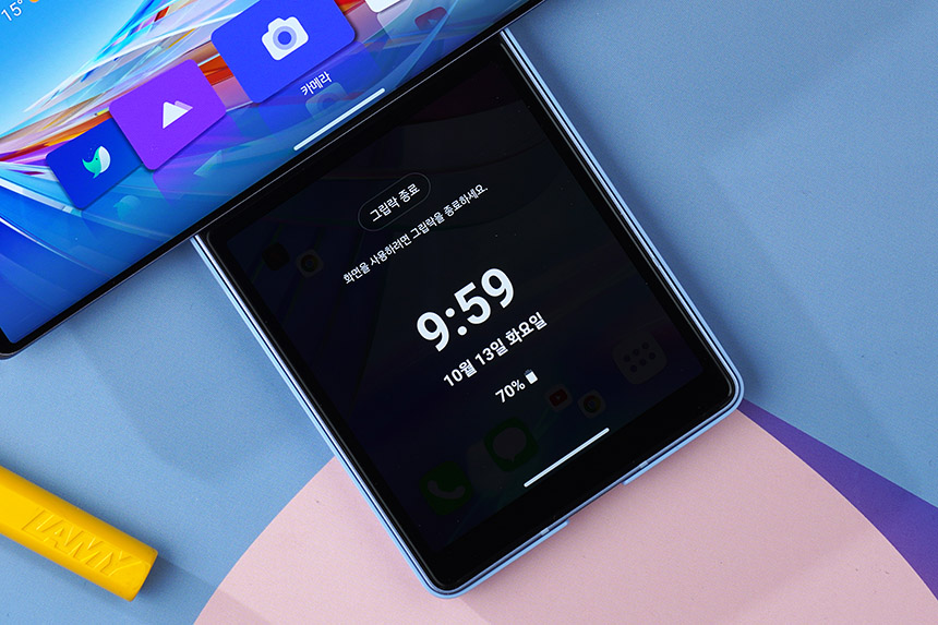 LG WING(윙)에는 LG UX 9.0 WING 인터페이스가 설치되어 있는데요. 디자인도 깔끔한 편이고 속도도 쾌적한 느낌이었습니다. 그리고 화면 내 지문 인식 기능을 이용해서 편리하게 잠금을 해제할 수 있습니다.