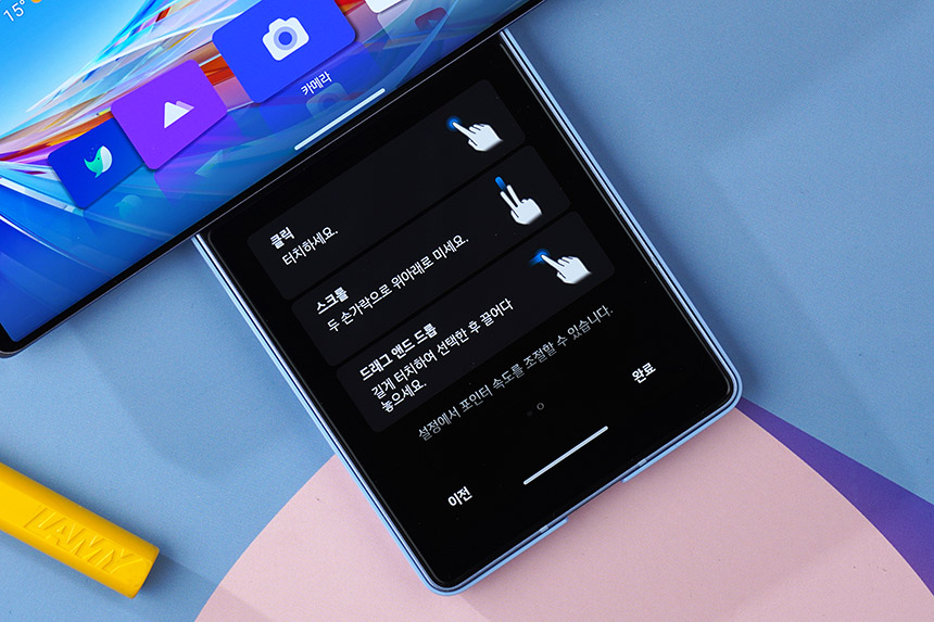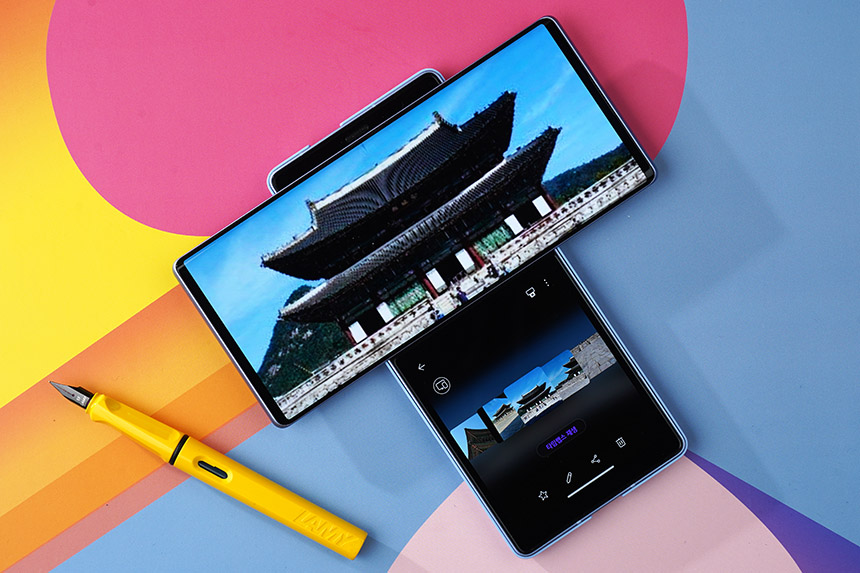 스위블 모드에서 갤러리 앱을 실행시키면 메인 스크린에서 전체화면으로 사진이나 동영상을 확인할 수 있고 세컨트 스크린에 리스트가 표시됩니다. 사진의 구도나 초점을 빠르게 확인하고 싶은 분들에게 유용한 부분입니다.