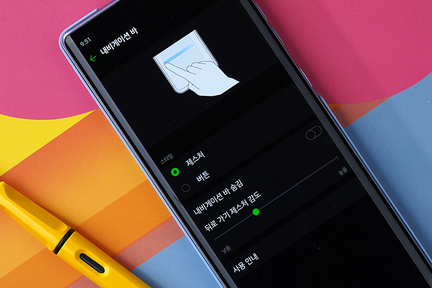 안드로이드 스마트폰에는 제스처 인터페이스가 포함되어 있습니다. 버튼 스타일보다 화면을 조금 더 넓게 사용할 수 있다는 장점이 있습니다. 사용 방법도 편리한 편이어서 저는 제스처 방식으로 설정하는 것을 추천합니다.