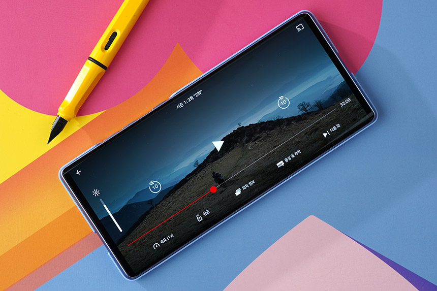 LG WING(윙)에 저장된 동영상을 감상하면서 다른 작업을 하거나 미디어 컨트롤러를 실행시킬 수도 있습니다. 참고로 미디어 컨트롤러는 메인 스크린에서 유튜브 영상을 감상할 때도 실행시킬 수 있습니다.