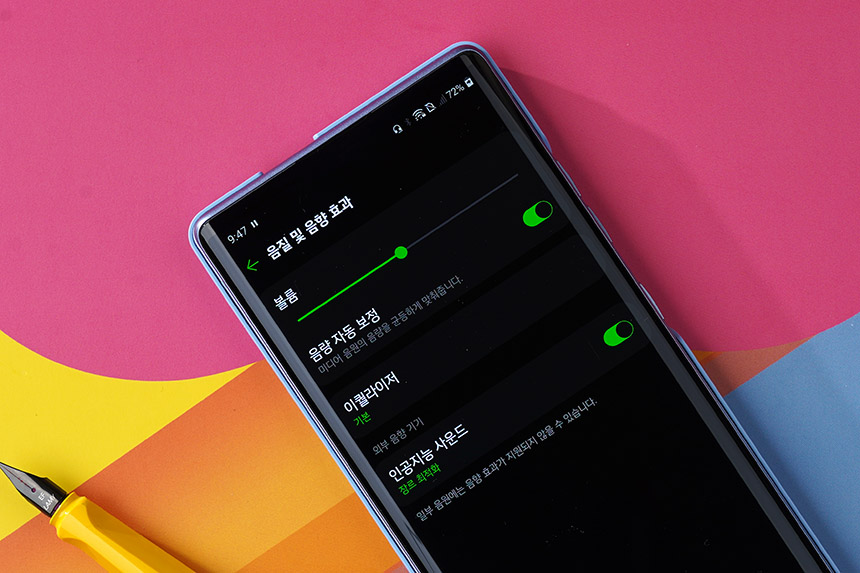 LG WING(윙)의 사운드 관련 기능을 살펴보면 이퀄라이저와 인공지능 사운드 기술이 탑재되었습니다. 그래서 자신에게 맞는 음색을 찾을 수 있습니다. 그리고 유선 이어폰이 거추장스러운 분들은 톤 프리와 같은 블루투스 이어폰을 구매해서 사용해도 좋을 것 같습니다.