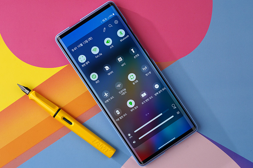 LG WING(윙)에는 LG UX 9.0 WING 인터페이스가 설치되어 있는데요. 디자인도 깔끔한 편이고 속도도 쾌적한 느낌이었습니다. 그리고 화면 내 지문 인식 기능을 이용해서 편리하게 잠금을 해제할 수 있습니다.