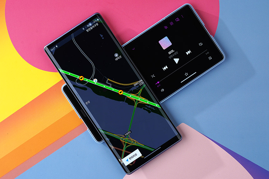 LG WING(윙)은 방향을 바꿔서 활용할 수 있습니다. 우선 아스팔트 9의 경우에는 게임을 실행시키면 세컨드 스크린에 경로가 표시됩니다. 재미있는 시도라고 생각이 되었습니다.