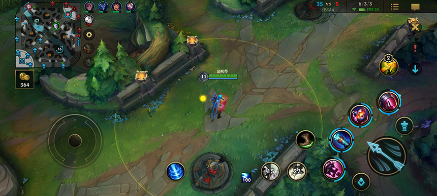 리그 오브 레전드 와일드 리프트의 게임 화면을 살펴보면 PC 버전의 조작성을 따라오기 위해서 많은 노력을 한 것을 확인할 수 있습니다. 그렇지만 복잡한 롤의 특성상 일반적인 모바일 게임과 비교하면 조작의 난이도가 높은 편입니다. 그래도 CS 막타를 치는 것이 어렵지는 않았습니다.