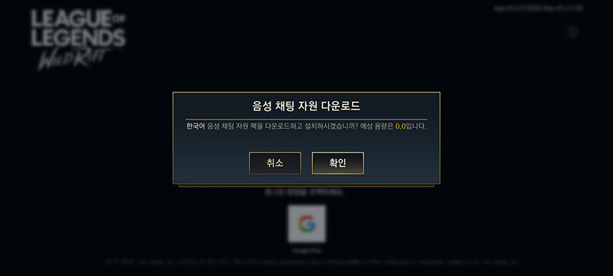 리그 오브 레전드 와일드 리프트를 설치하면 한국어 엄성 채팅 자원을 다운로드 할 것인지를 물어보는데요. 다운로드가 완료되면 한국어로 각종 음성을 들을 수 있습니다. 가능하면 설치하는 것을 추천합니다.