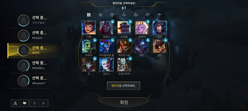 챔피언을 선택하는 화면은 PC 버전과 크게 다르지 않은 편입니다. 그리고 챔피언의 숫자는 컴퓨터 게임과 완벽하게 동일하게 맞추지는 않겠지만 지속해서 추가된다고 합니다.