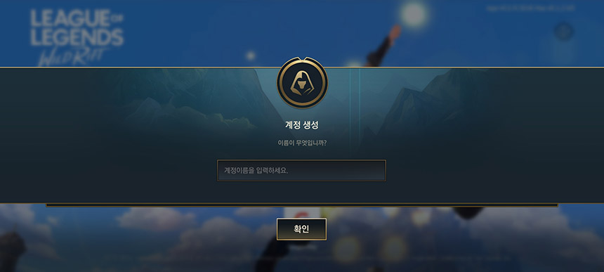 그리고 다시 구글 계정으로 로그인을 선택하면 계정의 이름을 생성할 수 있는 메뉴가 표시됩니다. 구글과 라이엇 계정을 묶어 놓기 위해서 초기 가입 절차를 약간 복잡하게 만들어 놓은 것 같습니다.