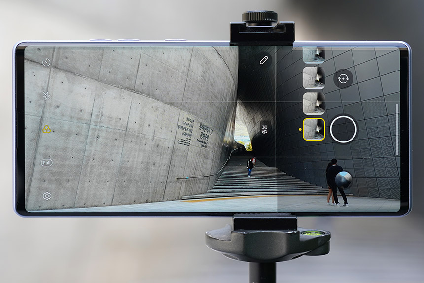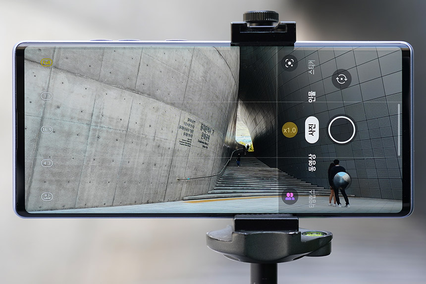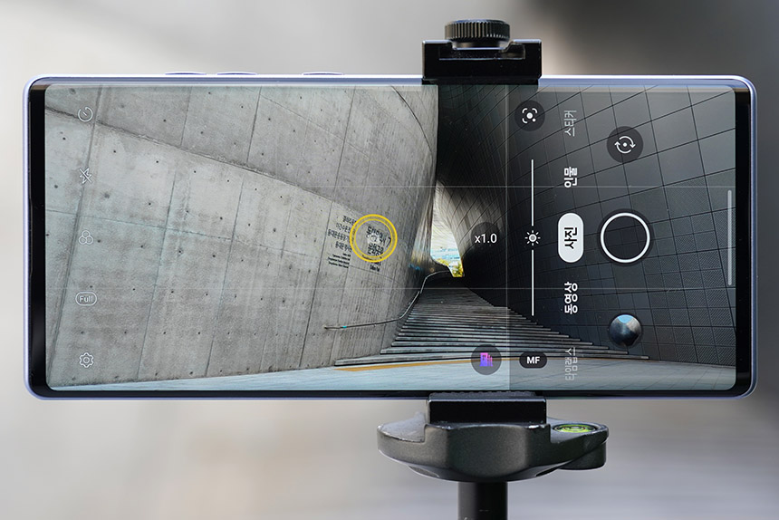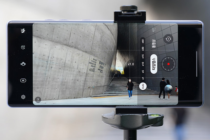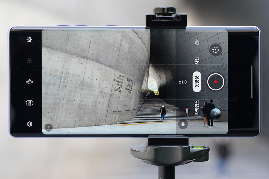 LG 윙(WING)의 화각은 오른쪽에 배치된 x0.5와 x1.0 버튼을 이용해서 간단하게 전환할 수 있습니다. 그리고 디지털 줌 기능을 이용해서 망원 카메라를 어느 정도 대체할 수 있습니다.