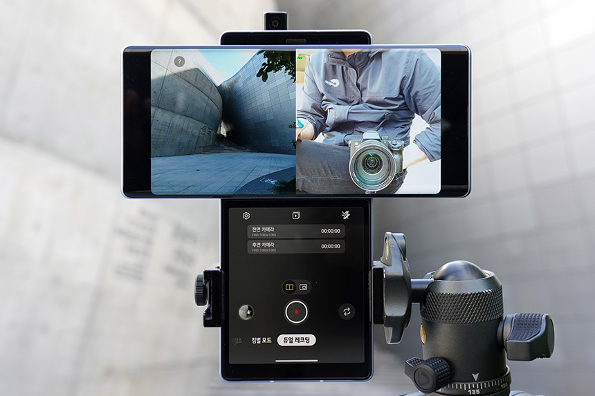 듀얼 레코딩은 후면 카메라와 전면 팝업 카메라를 동시에 사용해서 촬영하는 기능입니다. 여행 등 인상적인 장소를 방문했을 때 활용하면 좋을 것 같습니다. 그리고 팝업 카메라의 동작 속도도 빠른 편이라고 생각되었습니다.
