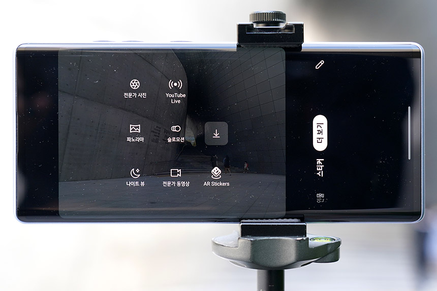 더 보기를 확인해 보면 전문가 사진이나 유튜브 라이브 그리고 파노라마 등 다양한 기능들이 준비되어 있습니다. 그래서 촬영하고자 하는 사진이나 동영상의 품질을 더욱 높일 수 있습니다.