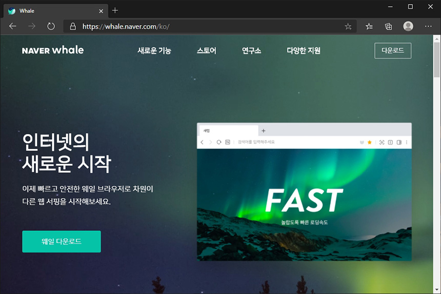 네이버 웨일 다운로드 : https://whale.naver.com/ko