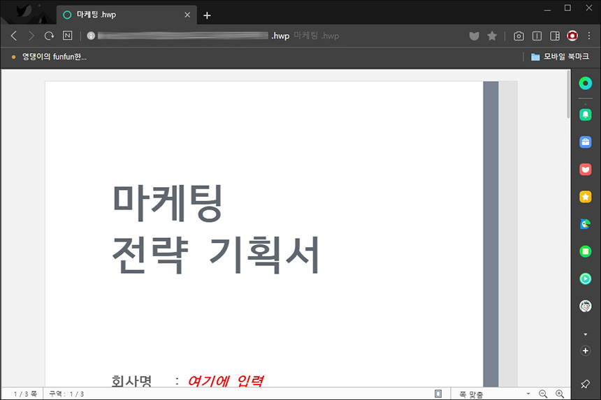 네이버 웨일은 한글과 컴퓨터 한글 문서를 읽을 수 있습니다. 한글 뷰어를 설치할 수 없는 환경에서 사용하면 좋을 만한 기능이라고 생각되었습니다. 생각보다 관련 기능 때문에 고통을 받는 분들이 많은 편입니다.