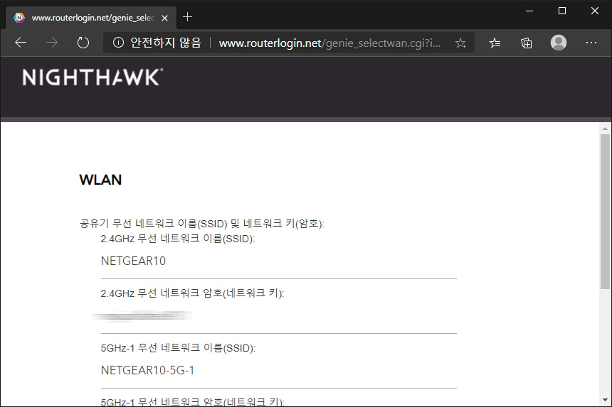 WLAN 설정에서는 2.4HZ와 5GHz-1 그리고 5GHz-2 무선 네트워크 이름과 암호를 설정할 수 있습니다. 내부 네트워크의 보안을 위해서는 가능하면 어렵게 설정하는 것을 추천합니다.