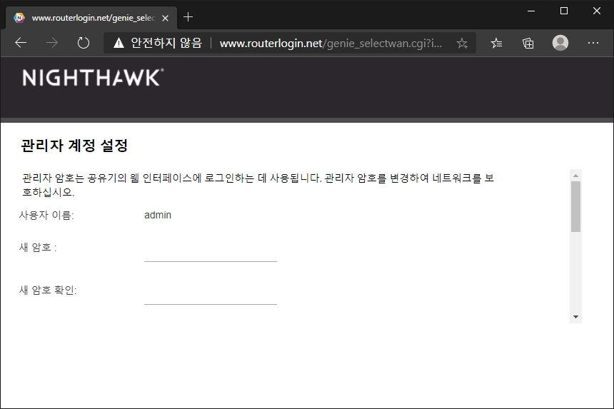 관리자 계정 설정에서는 admin 계정의 암호를 입력해주어야 합니다. 넷기어 RAX200 와이파이 공유기의 관리자 페이지는 강력한 기능을 제공하기 때문에 암호는 자신만 알고 있는 것이 좋을 것 같습니다.